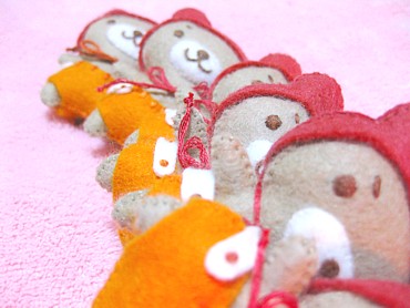 増殖。。。 くーまんsiblings 一番奥はくーまん2号。 きょうだいがいっぱい。 でも。。。よく見たら、お顔がゆがんでません?! どうしましょ。 なんか別人になってるのもあったりして。。。 かわいくないかしら? どうしましょ、どうしましょ。 なので、旅立てないひともいまふ。 でもでも、かわいくなくてもかわいがってくださいでふ。 ともあれ、くーまん2号との一番の違いは、鼻面部分が立体的になった点。 一番左はくーまん2号でふ。 皆さん、こんにちは!!